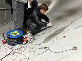 在选取了试验场地后,石宇辉与张兆帅同学便利用在实验室模拟实验得出的电极分布位置利用导电胶将各个电极粘合在隧道表面。
