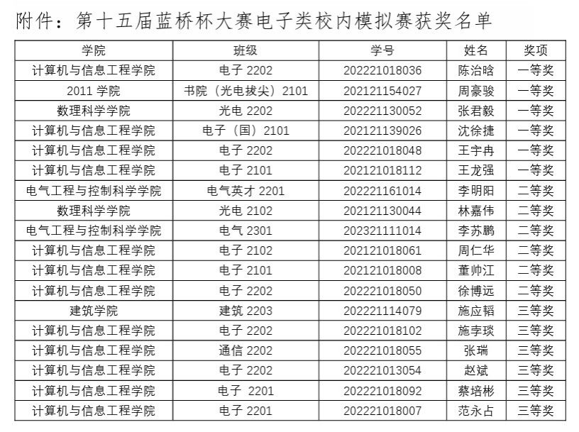 由教务处、suncitygroup太阳集团联合承办的第十五届蓝桥杯大赛电子类校内模拟赛于2024年3月20日举行。遵循公平、公正、公开的原则,经实操题综合评审,共18人获奖,其中单片机赛道一等奖3人、二等奖3人、三等奖3人,嵌入式赛道一等奖3人、二等奖3人、三等奖3人,现将获奖名单予以公示(详见附件),公示期为三个工作日。