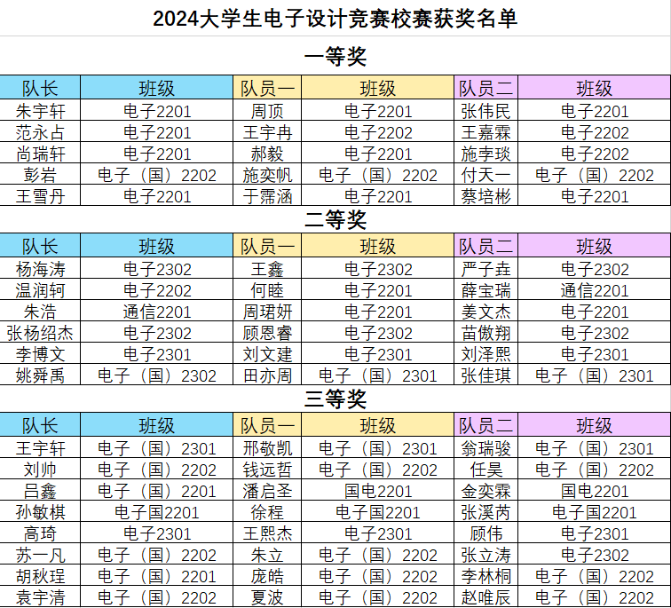 由创新创业公司、教务处、suncitygroup太阳集团联合承办的2024年全国老员工电子设计竞赛suncitygroup太阳集团校内选拔赛于2024年5月31日落下帷幕。经选手组队申报、自由选题、作品设计等环节,遵循公平、公正、公开的原则,根据现场测评综合审定,共评出一等奖5组,二等奖6组,三等奖8组,现将比赛结果公示如下。