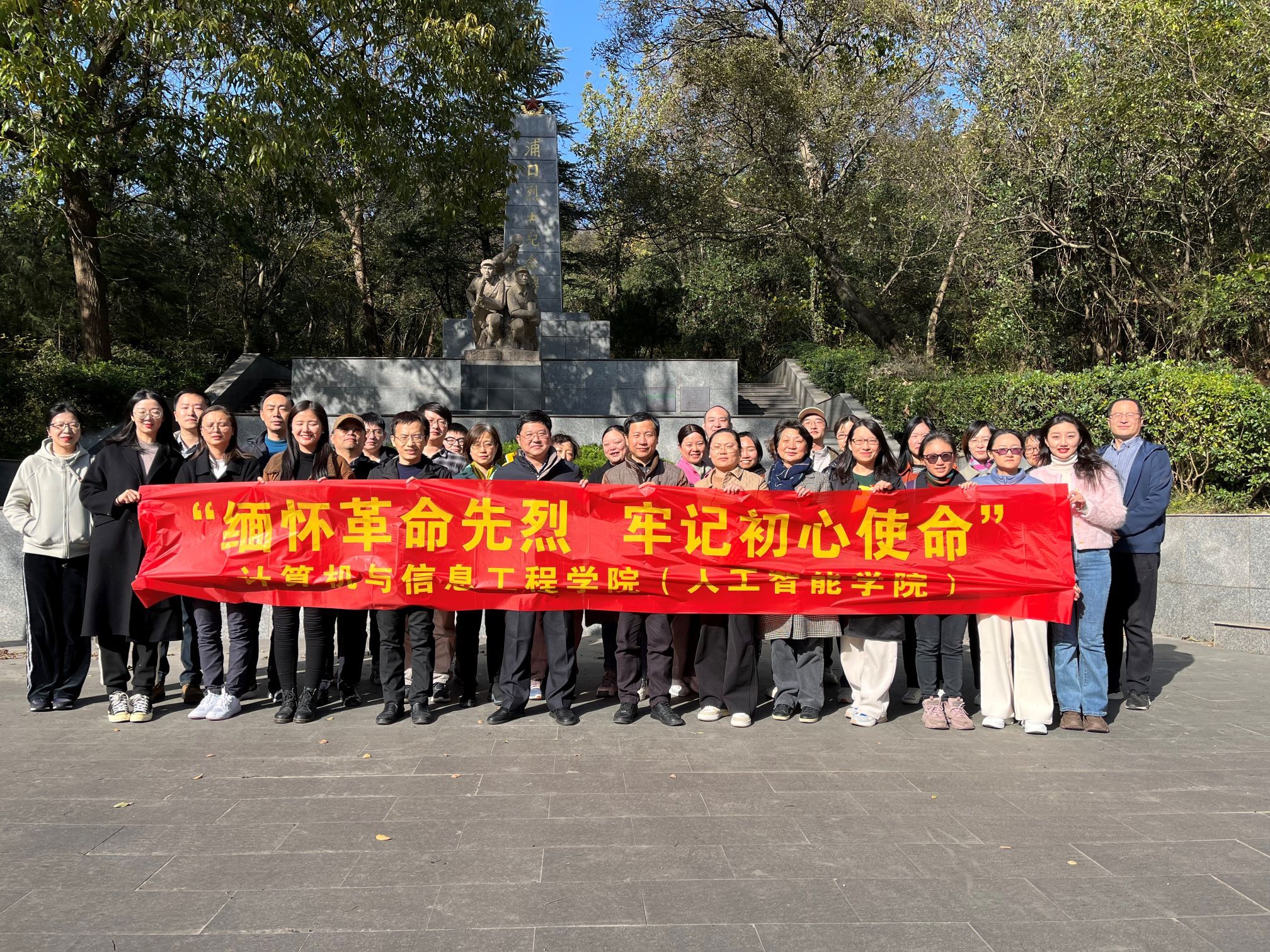 参加活动的全体教职工首先来到了浦口区无名烈士纪念碑。大家学习了烈士们为了国家和民族解放事业而流血牺牲的英雄事迹,并缓步沿碑绕行一周,深情瞻仰革命烈士纪念碑,深切缅怀革命烈士的丰功伟绩,表达追思和敬意,从英烈的崇高品质和革命精神中汲取奋进力量。
