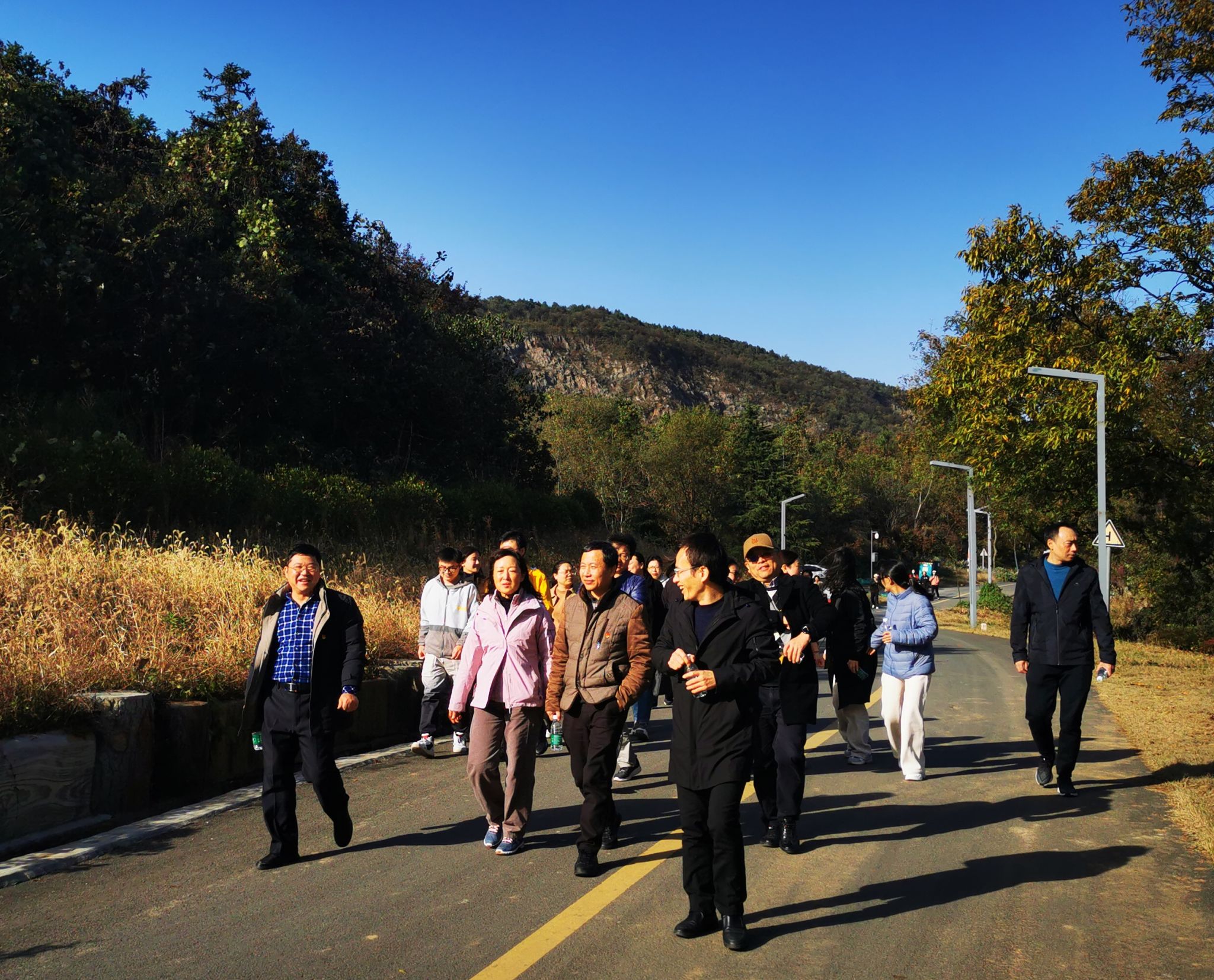 随后,大家来到了浦口的美丽乡村响堂,开展了“走进美丽乡村、凝聚奋进力量”学习活动。一路走来,大家感受到了美丽乡村的自然之美,感悟到了乡村的振兴和发展,看到了在党的带领下振兴乡村的巨大成绩。初冬之时老山之美也让大家陶醉,优美的自然风光清新的空气让大家舒畅轻松,大家边走边聊欢声笑语,畅想美好未来。