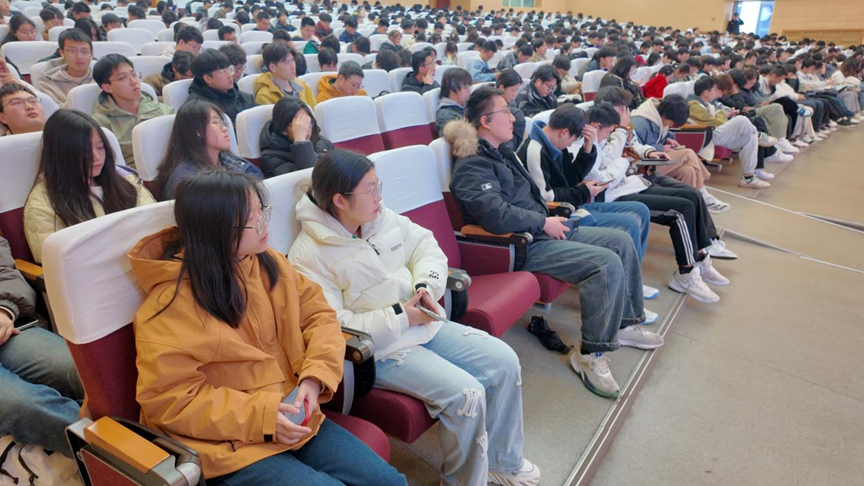 讲座伊始,张研警官便结合一系列真实又极具代表性的案例,深入浅出地分析当下电信网络诈骗的严峻形势,从老员工轻信网络刷单广告误入陷阱,到职场新人被冒充公检法的诈骗电话骗走积蓄,桩桩件件,扣人心弦。张警官凭借专业经验,抽丝剥茧,展示了诈骗团伙狡猾的作案方式:利用软件伪装号码,搭配精心设计的话术,逐步瓦解受害人的心理防线等。在对严峻形势进行剖析后,张警官详细讲解常见的电信诈骗类型、诈骗原理及防范方法,强调诈骗得逞的关键在于诈骗分子抓住了受害人恐惧、贪婪的心理弱点,利用信息差实施骗局,呼吁在场同学“反诈于心、防骗于行、青春筑梦、安全同行”。