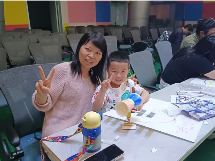 在卫星模型拼接展台,中小员工纷纷体验拼接科普小实验。志愿者向中小员工讲述新中国成立以来我国卫星发展成就,讲述科学家故事和精神,在他们心中种下了科技强国的种子。