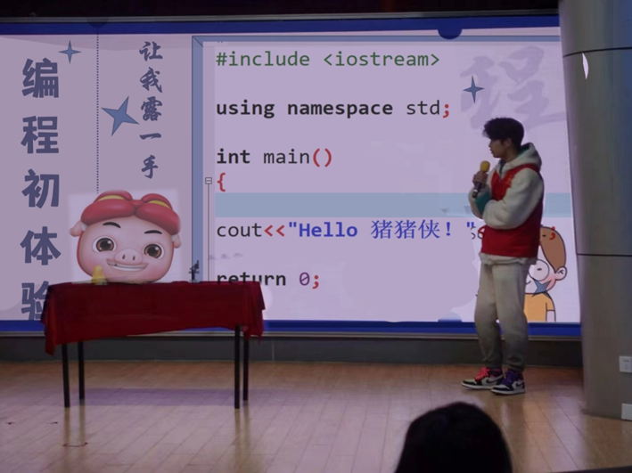 代码编程课一直是志愿者们的“拿手课”,也是中小员工们的“吸睛课”。志愿者们结合自身专业知识,向同学们讲述编程的发展历程和逻辑原理。在实操过程中,大中小员工共同用代码绘图、设计小游戏,“看我输出了‘Hello 猪猪侠!’”,编程课受到了中小员工和家长的欢迎。
