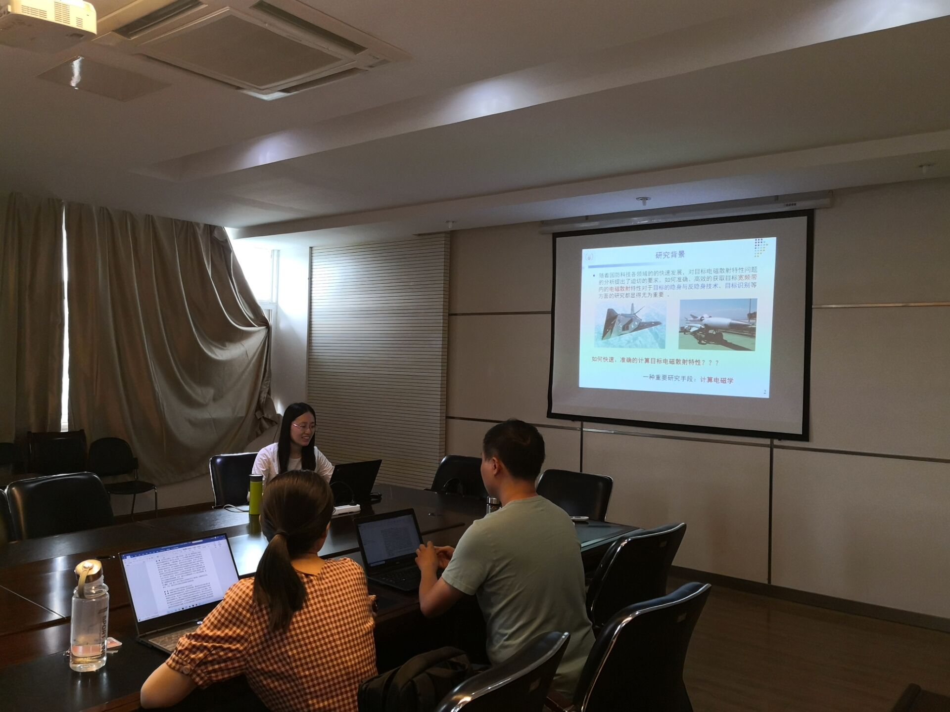 赵颖老师报告的题目是《时域积分方程的不连续伽辽金方法分析》,介绍了不连续伽辽金时域积分方程方法,用于分析含有多尺度金属目标以及含有色散媒质目标的瞬态电磁散射特性。王潇老师报告的题目是《层析合成孔径雷达建筑物三维重构方法研究》,介绍了层析合成孔径雷达技术在建筑物三维重构和森林垂直结构反演中的应用。