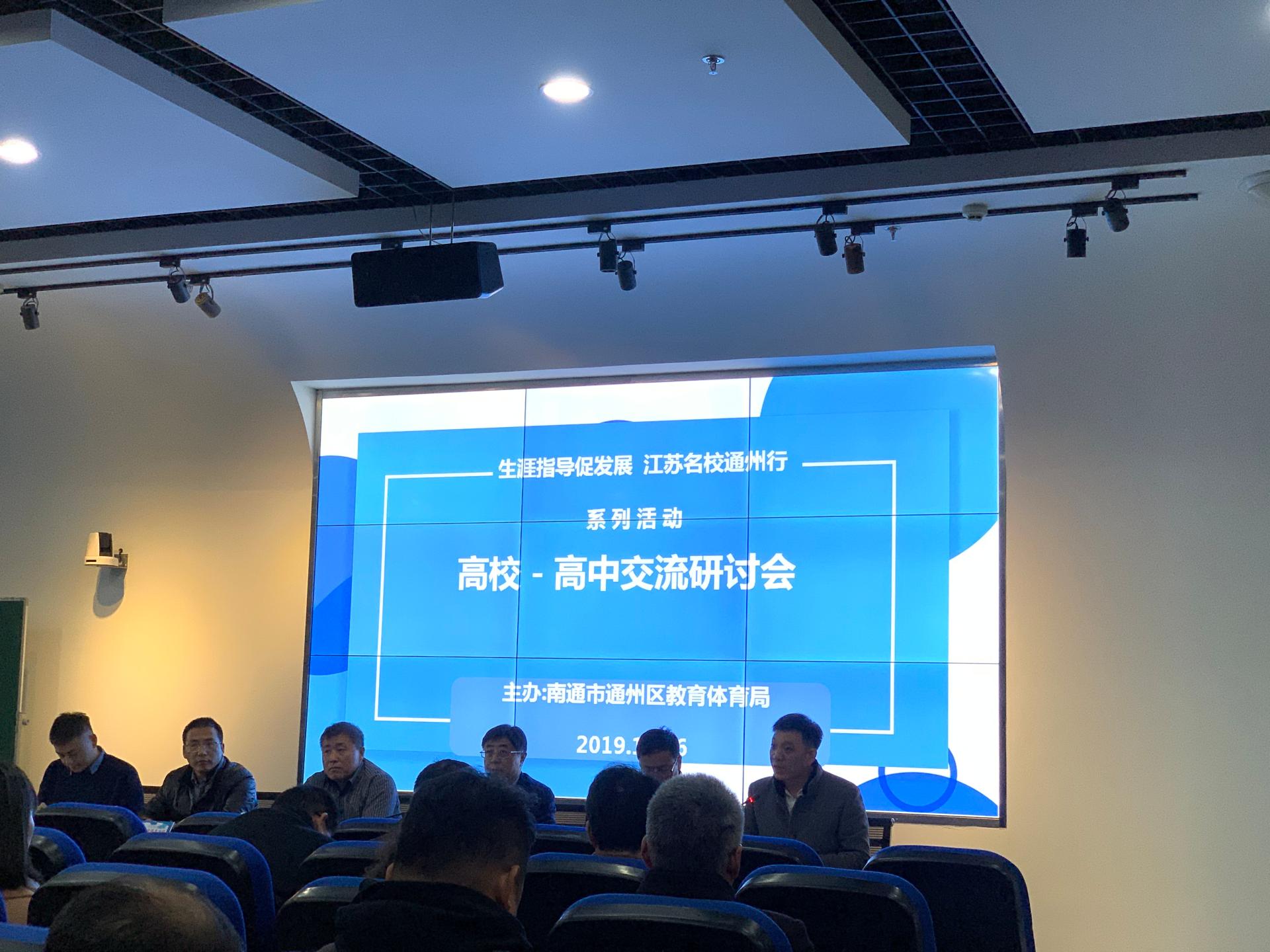 6日下午,在江苏省通州高级中学举行了高校—高中交流研讨会,会上通州区教育体育局相关领导、南京大学招生办主任、通州高级中学副董事长分别讲解了通州区高中教育发展情况;目前省内招生工作形式、综合评价录取相关政策,介绍南京大学的相关招生举措等;通州高级中学的办学历史和历年升学率等情况。