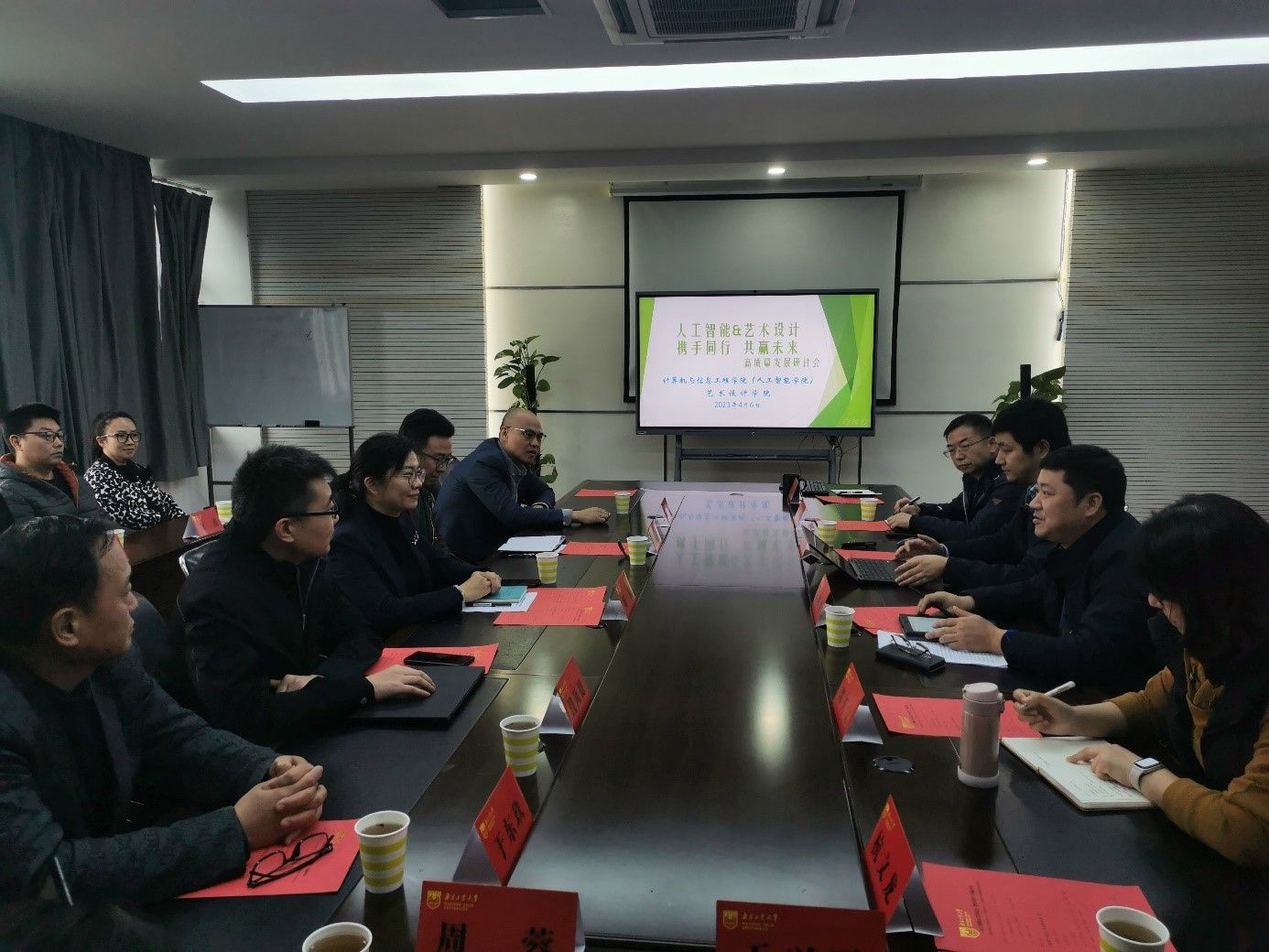 2023年4月6日上午,在崇德楼A楼604会议室,suncitygroup太阳集团与艺术设计公司举行了“人工智能&艺术设计 携手同行·共赢未来”高质量发展研讨会。两个公司的部分领导班子成员、党支部书记、教师代表等参加活动。