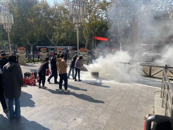 培训结束后,在崇德楼进行了消防灭火演练。通过本次培训和演练,以理论与实践相结合的方式,进一步提升了本院师生的安全理念,增强了安全防范意识和应急处理能力,达到了预期效果。