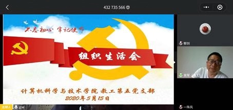 5月15日上午10点,计算机科学与技术公司教师第五党支部召开了主题为“同心抗疫 党员先行 教学不断”的线上组织生活会。会议在腾讯会议平台上进行,由支部书记郭天文老师主持,支部全体党员参加了线上会议。