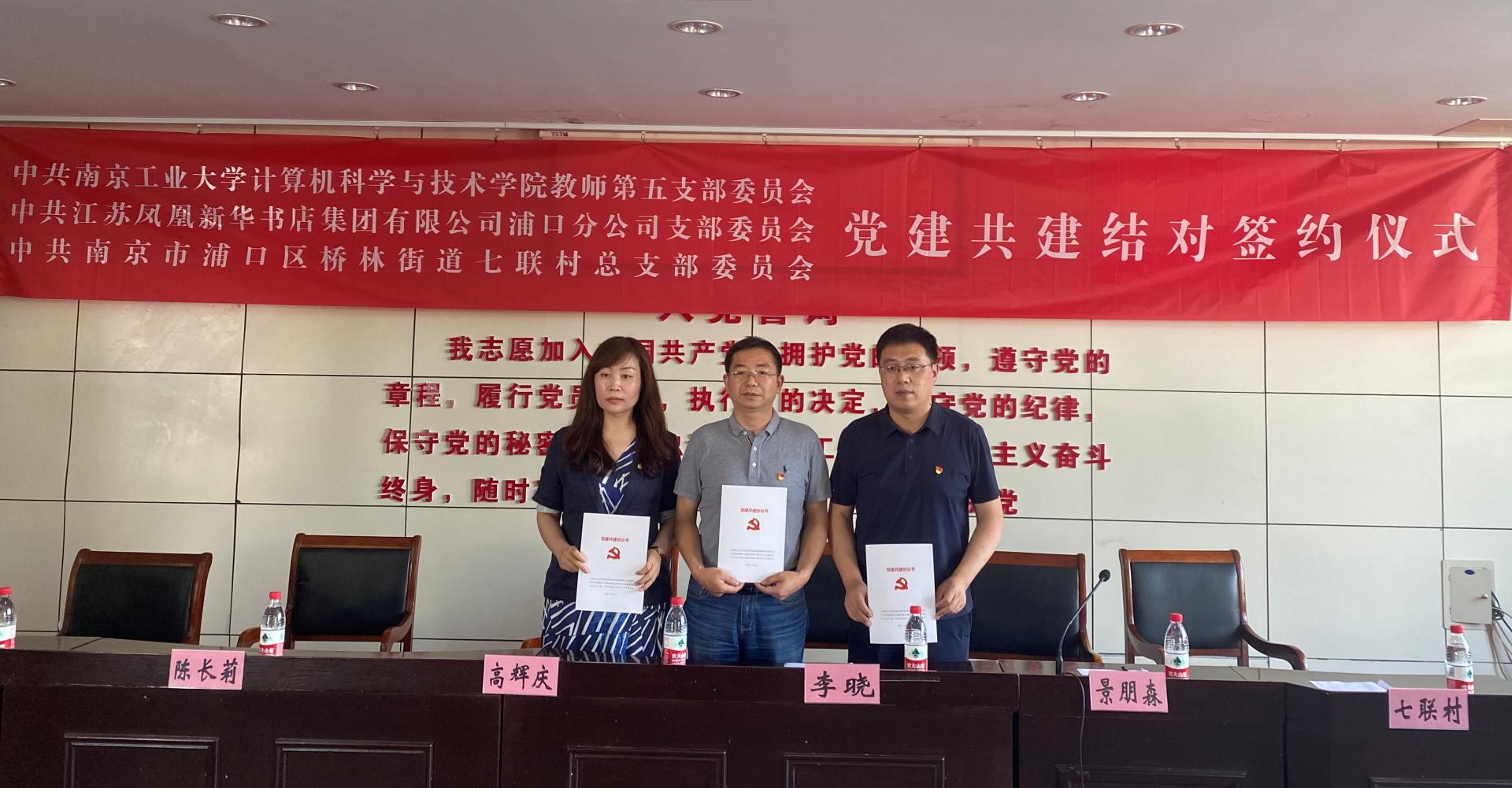 6月15日下午,在浦口区桥林街道七联村村部,计算机科学与技术公司教师第五党支部与江苏凤凰新华书店集团有限公司浦口分公司党支部、浦口区桥林街道七联村党总支部举行三方结对共建签约仪式。共建方党组织负责人、全体成员,总计约40余人参加本次活动。