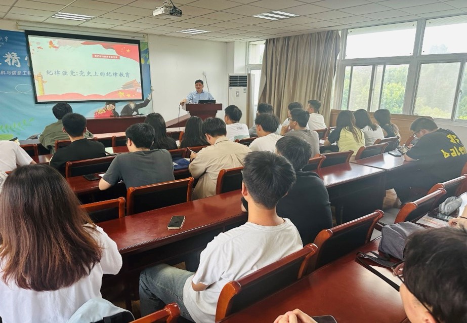 为扎实推进党纪学习教育,教育引导党员自觉学纪、准确知纪、心中明纪、严格守纪,根据公司党委党纪学习教育的工作安排和要求, 近日,公司党委书记高辉庆以《党史上的党纪教育》为题为教师第四党支部和行政党支部、计算机科学与技术(嵌入式培养)专业党支部和研究生第四党支部全体师生党员,讲授党纪学习教育专题党课。