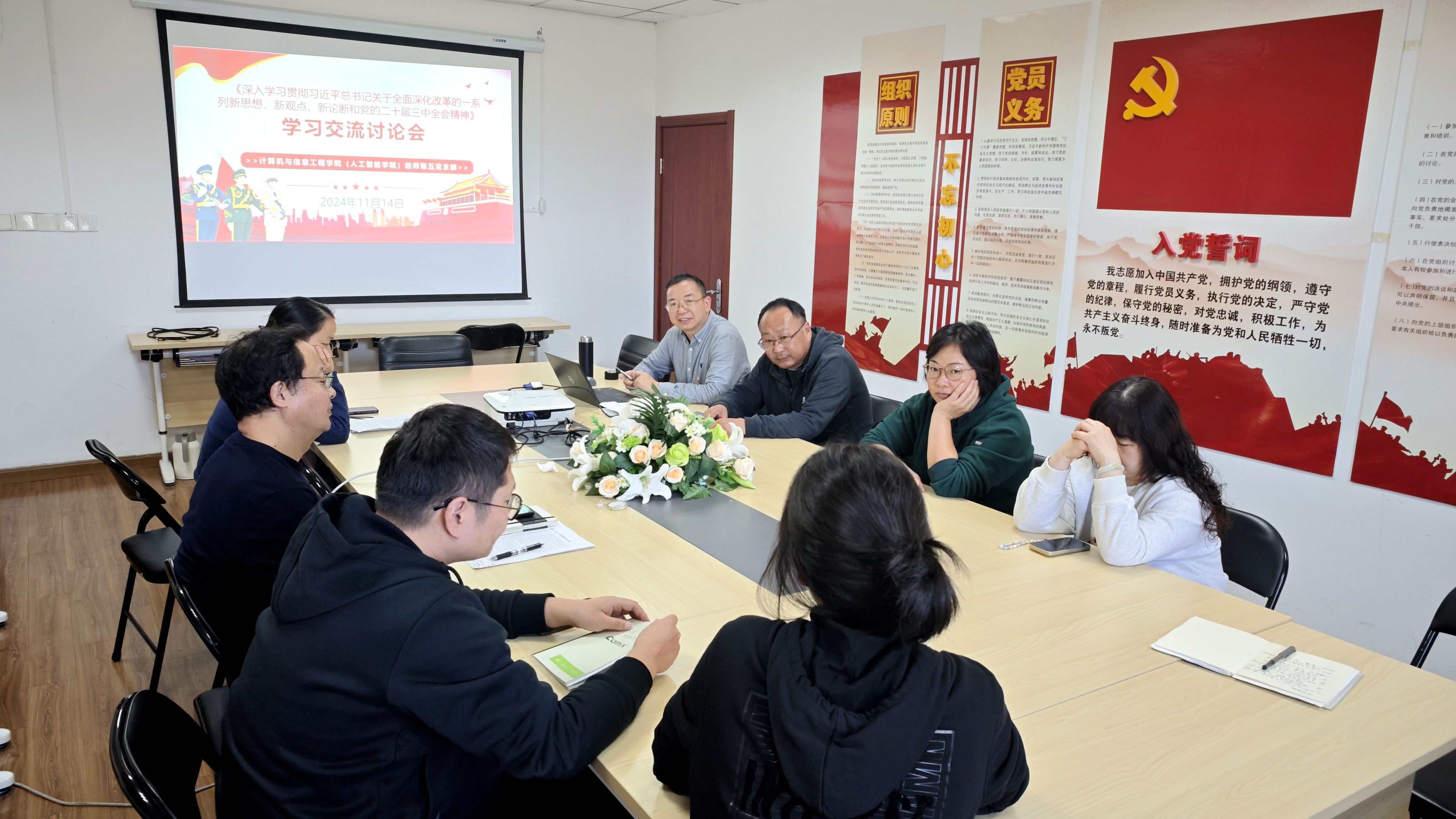 11月14日,suncitygroup太阳集团(简称suncitygroup太阳集团)教师第五党支部在公司党员之家召开了支部建设工作推进暨学习交流讨论会。此次会议旨在深入学习贯彻党的二十大和二十届三中全会精神,推进支部建设工作,并促进党员之间的交流与学习。会议由党支部书记景朋森同志主持,支部全体党员参加了此次活动。