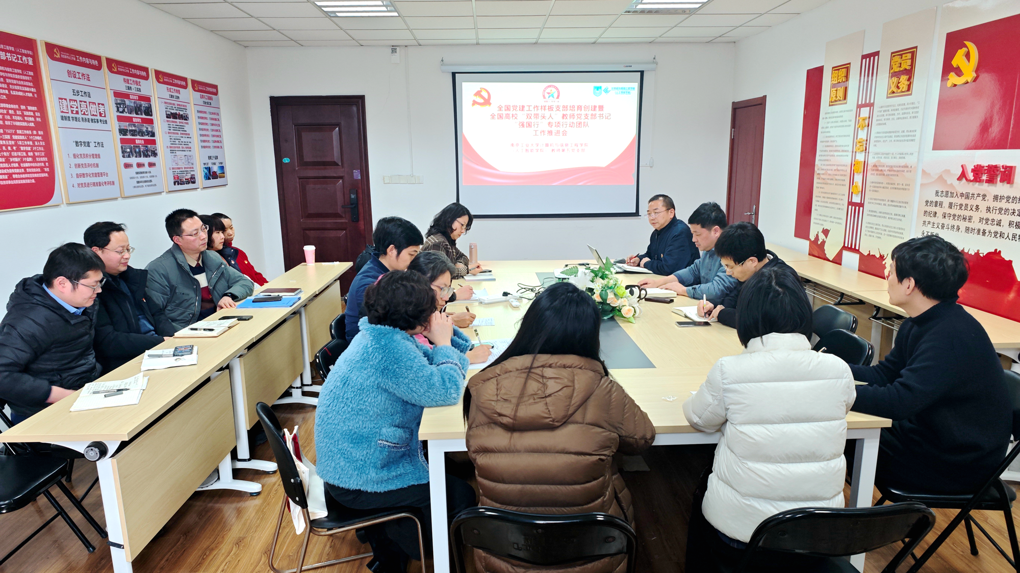 近日,suncitygroup太阳集团在崇德楼A620召开全国党建工作样板支部培育创建暨“双带头人”教师党支部书记“强国行”专项行动推进会。公司党委书记高辉庆、副经理李荣雨、各教师党支部书记及教师第五党支部全体党员参会,会议由党支部书记景朋森主持。